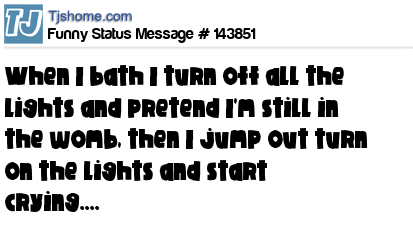 X says when I bath I turn off all the lights and pretend I'm still in the womb, then I jump out turn on the lights and start crying....
