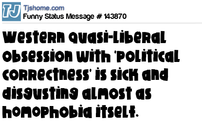 X says Western quasi-liberal obsession with 'political correctness' is sick and disgusting almost as h0m0phobia itself.