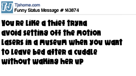 X says You’re like a thief tryna avoid setting off the motion lasers in a museum when you want to leave bed after a cuddle without waking her up