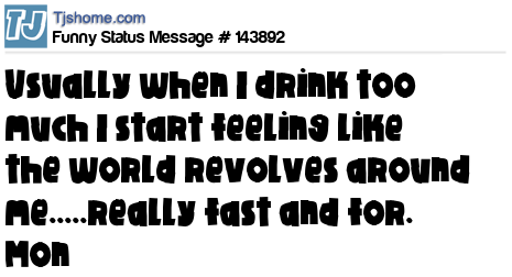 X says Usually when I drink too much I start feeling like the world revolves around me.....really fast and for. Mon