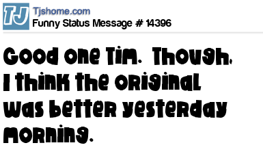 X says good one Tim. Though, I think the original was better yesterday morning.