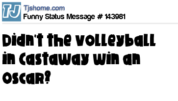 - # 143976 Jennifer Aniston's acting has the emotional range of the volleyball in Castaway.