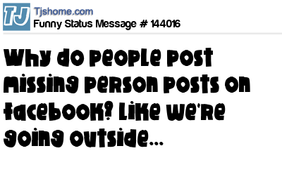 X Why do people post missing person posts on facebook? Like we're going outside...