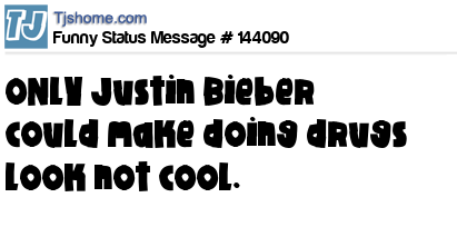 - # 129162 Police in Sweden found drugs on Justin Bieber's bus. I'm sure it wasn't for him. It was for the rest of his crew who have to tolerate him.