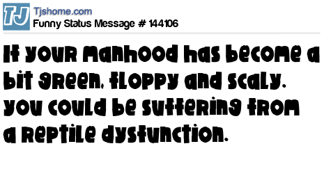 X says If your manhood has become a bit green, floppy and scaly. you could be suffering from a reptile dysfunction.