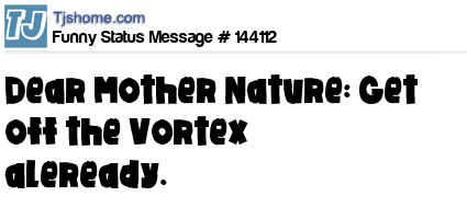 X says Dear Mother Nature: Get off the Vortex aleready.