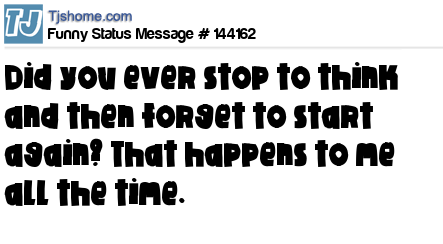 X says Did you ever stop to think and then forget to start again? That happens to me all the time.