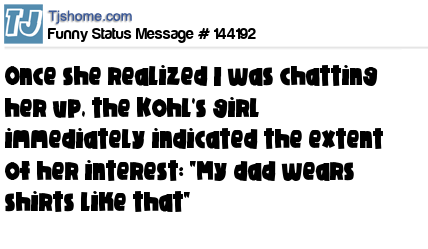 X says Once she realized I was chatting her up, the Kohl's girl immediately indicated the extent of her interest: "My dad wears shirts like that"