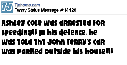 X says Ashley cole was arrested for speeding!! In his defence, he was told tht John Terry's car was parked outside his house!!!