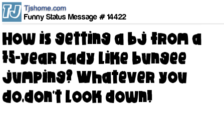 - # 67089 I refuse to go bungee jumping...I came into this world because of a broken rubber, I'm not leaving because of one.