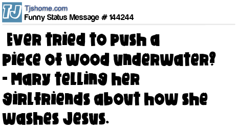 X says “Ever tried to push a piece of wood underwater?” - Mary telling her girlfriends about how she washes Jesus.