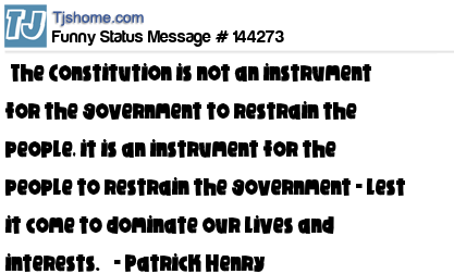X says “The Constitution is not an instrument for the government to restrain the people, it is an instrument for the people to restrain the government - lest it come to dominate our lives and interests.” - Patrick Henry