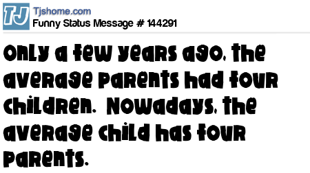 X says Only a few years ago, the average parents had four children. Nowadays, the average child has four parents.