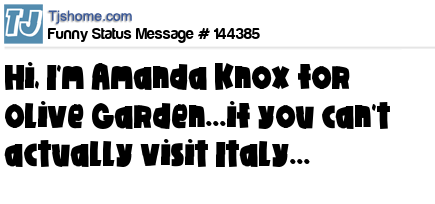 X says Hi, I'm Amanda Knox for Olive Garden...if you can't actually visit Italy...