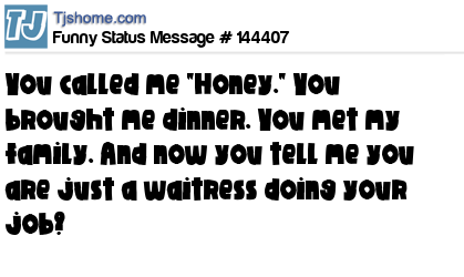 - # 139350 I thought we had something. You met my family, made me dinner, called me honey. Now suddenly you’re a “waitress” who was “doing her job?”