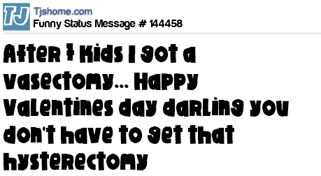 X says After 7 kids I got a vasectomy... Happy Valentines day darling you don't have to get that hysterectomy