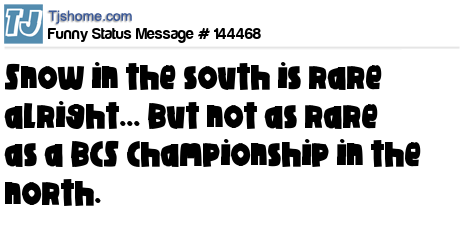 X says Snow in the south is rare alright... But not as rare as a BCS Championship in the north.