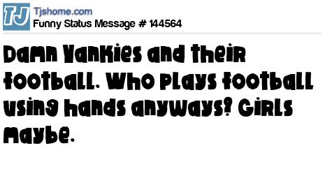 X says Damn Yankies and their football. Who plays football using hands anyways? Girls maybe.