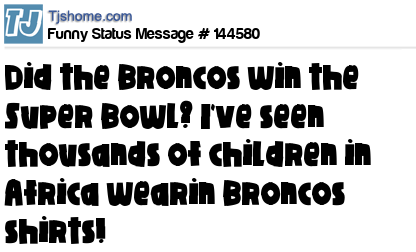 X says Did the Broncos win the Super Bowl? I've seen thousands of children in Africa wearin Broncos shirts!