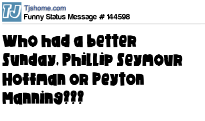 X says Who had a better Sunday, Phillip Seymour Hoffman or Peyton Manning???