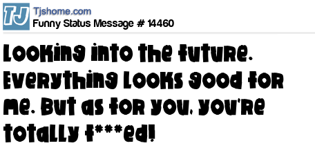 X is looking into the future. Everything looks good for me. But as for you, you're totally f***ed!