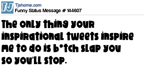 X says The only thing your inspirational tweets inspire me to do is b*tch slap you so you'll stop.