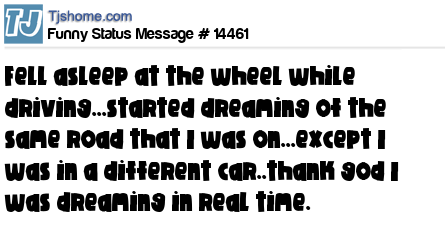 X is fell asleep at the wheel while driving...started dreaming of the same road that I was on...except I was in a different car..thank god I was dreaming in real time.