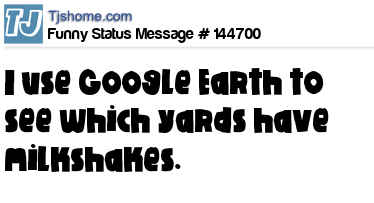 - # 68985 If I ever Google "things to eat in my fridge" and list is correct thats when I'll really be impressed with Google Earth.