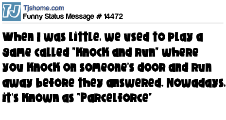 X When I was little, we used to play a game called "knock and run" where you knock on someone's door and run away before they answered. Nowadays, it's known as "Parcelforce"