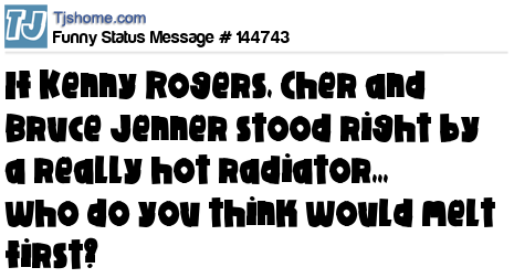 X If Kenny Rogers, Cher and Bruce Jenner stood right by a really hot radiator,,, who do you think would melt first?