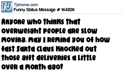 X Anyone who thinks that overweight people are slow moving, may I remind you of how fast Santa Claus knocked out those gift deliveries a little over a month ago?