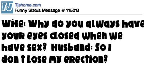 X says Wife: Why do you always have your eyes closed when we have sex? Husband: So I don’t lose my erection?