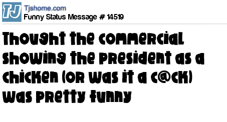X Thought the commercial showing the president as a chicken (or was it a c@ck) was pretty funny