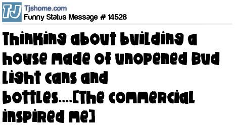 X is thinking about building a house made of unopened Bud Light cans and bottles....[The commercial inspired me]