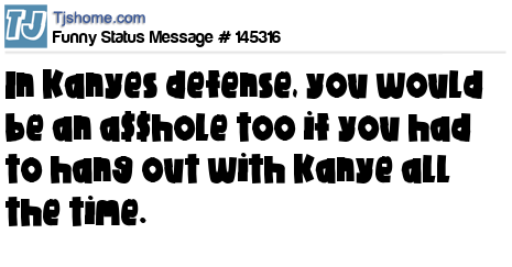 X says In Kanyes defense, you would be an a$$hole too if you had to hang out with Kanye all the time.