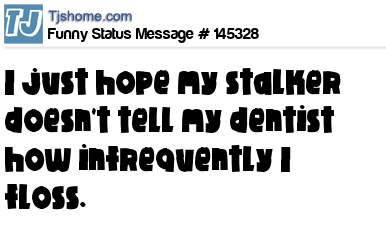 X says I just hope my stalker doesn't tell my dentist how infrequently I floss.