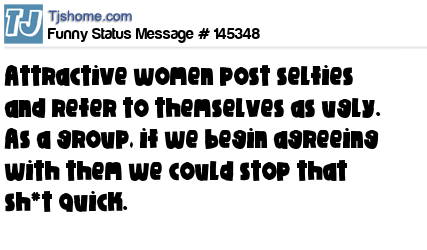 X says Attractive women post selfies and refer to themselves as ugly. As a group, if we begin agreeing with them we could stop that sh*t quick.