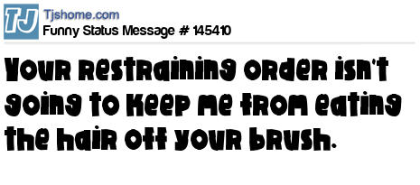 X says Your restraining order isn't going to keep me from eating the hair off your brush.
