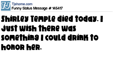X says Shirley Temple died today. I just wish there was something I could drink to honor her.