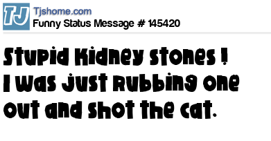X says Stupid kidney stones ! I was just rubbing one out and shot the cat.