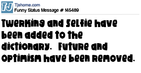 - # 136491 So I'm reading that "twerking" and "selfie" have been added to the dictionary. "Future" and "optimism" have been removed...