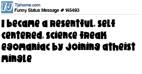 X says i became a resentful, self centered, science freak egomaniac by joining atheist mingle