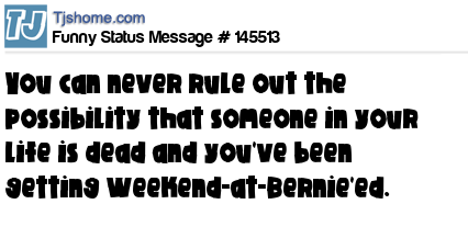 X says You can never rule out the possibility that someone in your life is dead and you've been getting Weekend-at-Bernie'ed.