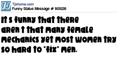 X says It’s funny that there aren’t that many female mechanics yet most women try so hard to "fix" men.