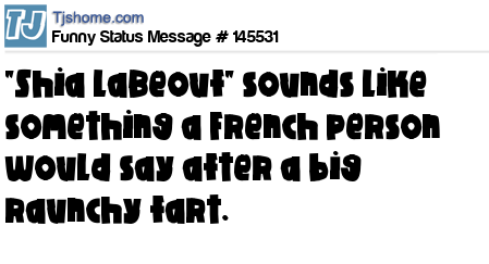 - # 195357 "Shia LaBeouf" sounds like something a French guy would say after a really raunchy fart.