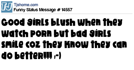 X good girls blush when they watch porn but bad girls smile coz they know they can do better!!! ;-)