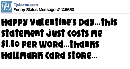 - # 46277 Happy Valentine's Day...... this statement costs me 5.99 per "like" .... thanks Hallmark....
