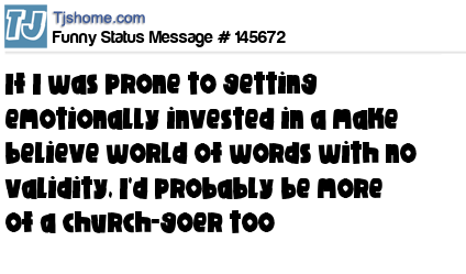 X says If I was prone to getting emotionally invested in a make believe world of words with no validity, I'd probably be more of a church-goer too
