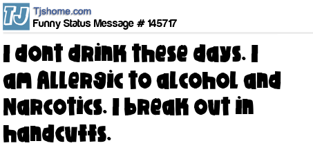 - # 115090 I'm allergic to tequila, I break out in handcuffs.