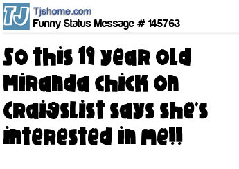 X says So this 19 year old Miranda chick on Craigslist says she's interested in me!!